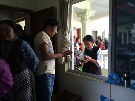 藏醫(yī)藥學不僅是我國民族醫(yī)學的重要組成部分,在毗鄰的喜馬拉雅地區(qū)也廣為流傳,在尼泊爾深受當地百姓信賴。6月13日,由公司董事長雷菊芳女士帶隊,包括藏醫(yī)及助手等在內的醫(yī)療救援小分隊抵達尼泊爾加德滿都,用藏醫(yī)藥為尼泊爾人民提供災后醫(yī)療救助服務。次日醫(yī)療小分隊即展開了藏醫(yī)義診活動,候診的患者排滿了走廊。截止6月20日,共義診病人700位。本次義診活動還將根據災區(qū)患者情況持續(xù)進行,我們也將與前方同事保持聯(lián)系、跟進報道。