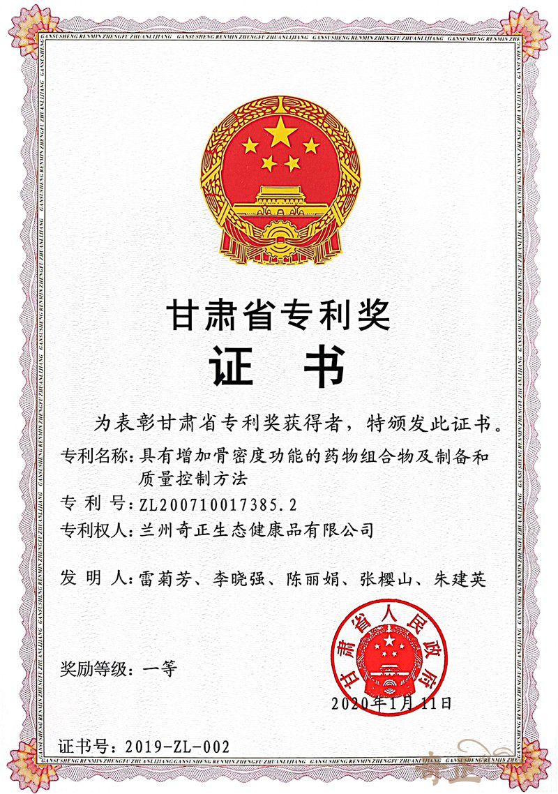 甘肅省專(zhuān)利一等獎(jiǎng)(2020.1)