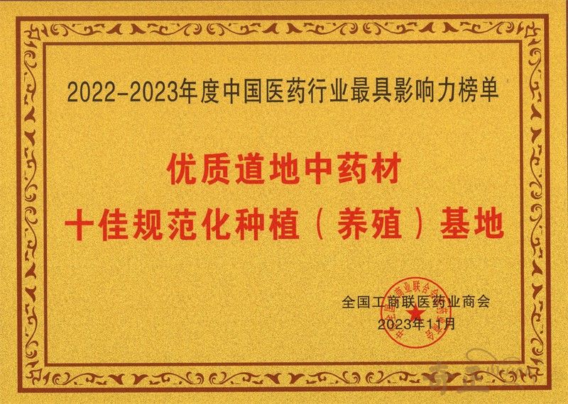 優(yōu)質(zhì)道地中藥材十佳規(guī)范化種植(養(yǎng)殖)基地