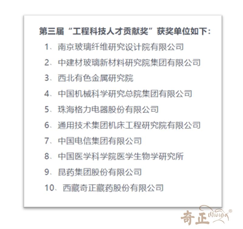 近日,第三屆中華國際科學(xué)交流基金會“工程科技人才貢獻(xiàn)獎”獲獎名單揭曉,奇正藏藥榮譽(yù)上榜。