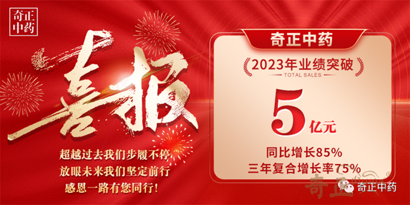 一番耕耘、一份收獲,喜訊傳來,奇正中藥超額完成2023年度銷售任務(wù),業(yè)績突破5億元,同比增長85%,三年復(fù)合增長率75%。