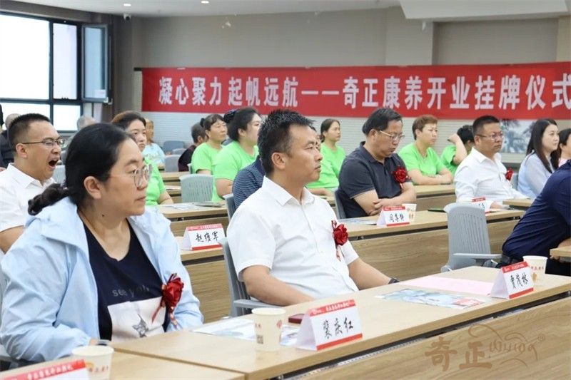 在現(xiàn)場(chǎng)熱烈的掌聲中,領(lǐng)導(dǎo)嘉賓共同為奇正康養(yǎng)揭牌。紅布緩緩揭開(kāi),牌匾熠熠生輝,象征著奇正康養(yǎng)正式揚(yáng)帆起航。
