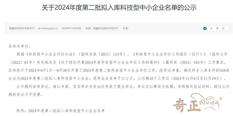 2024年11月7日西藏自治區(qū)科學(xué)技術(shù)廳發(fā)布了“關(guān)于2024年度第二批擬入庫科技型中小企業(yè)名單的公示”,科技型中小企業(yè)認(rèn)證是對企業(yè)技術(shù)實力和經(jīng)營管理能力的有力肯定,林芝雪域資源科技有限公司獲此殊榮。