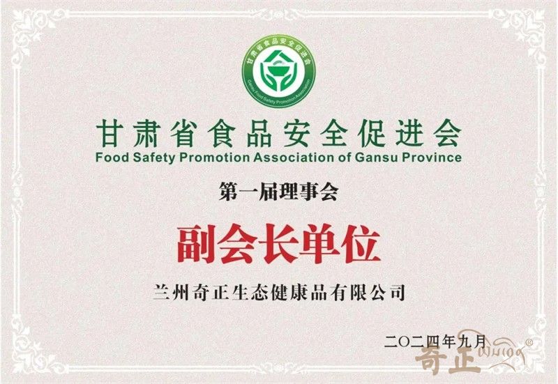 2024年9月6日,甘肅省食品安全促進(jìn)會(huì)暨第一次會(huì)員大會(huì)在蘭州召開,奇正健康入選為“第一屆理事副會(huì)長單位”,為落實(shí)食品安全主體責(zé)任,促進(jìn)食品產(chǎn)業(yè)高質(zhì)量發(fā)展貢獻(xiàn)奇正力量。