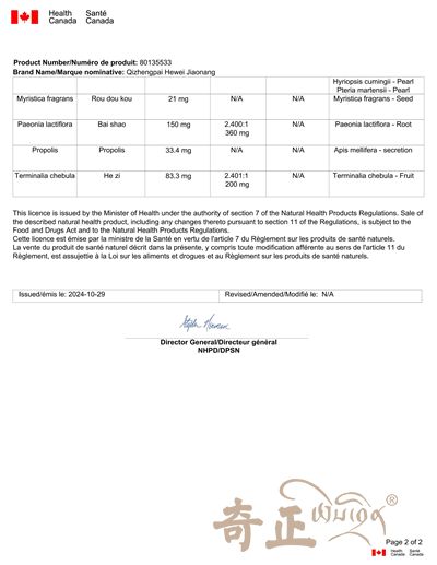 2024年10月29日,奇正牌訶衛(wèi)膠囊獲得加大拿天然健康產(chǎn)品注冊號,截止目前,奇正健康共獲得加拿大天然健康產(chǎn)品注冊號產(chǎn)品增至5款,為奇正健康進(jìn)一步拓寬海外銷售渠道、深化國際市場影響力奠定了堅(jiān)實(shí)的基礎(chǔ)。