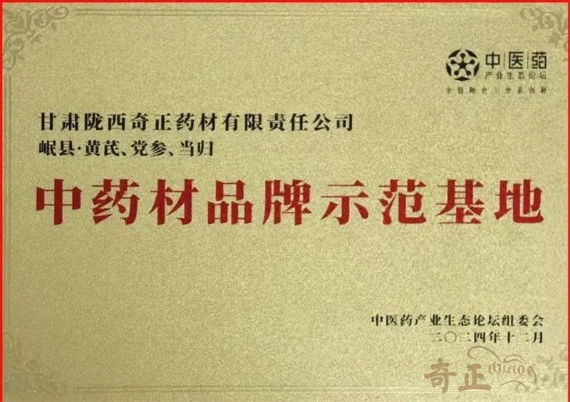 2024年12月15日,第二屆中醫(yī)藥產(chǎn)業(yè)生態(tài)大會(huì)(TMEC)在雄安新區(qū)盛大開幕。會(huì)議中發(fā)布了“2024年中藥材品牌示范基地”評選結(jié)果,100個(gè)中藥材品牌示范基地最終入選,甘肅隴西奇正藥材有限責(zé)任公司榮耀上榜。